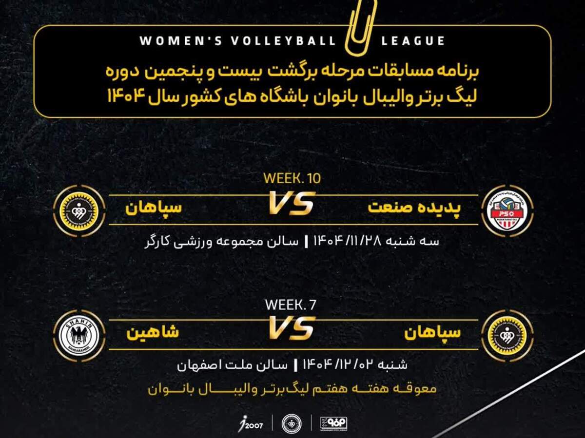 برنامه دیدارهای تیم والیبال بانوان سپاهان به شرح زیر است: